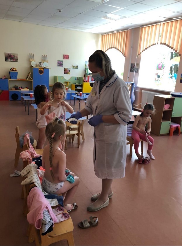 Мы следим за здоровьем наших детей и ежедневно (два раза в день) врачи проверяют температуру и проводят осмотр