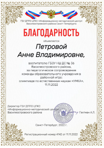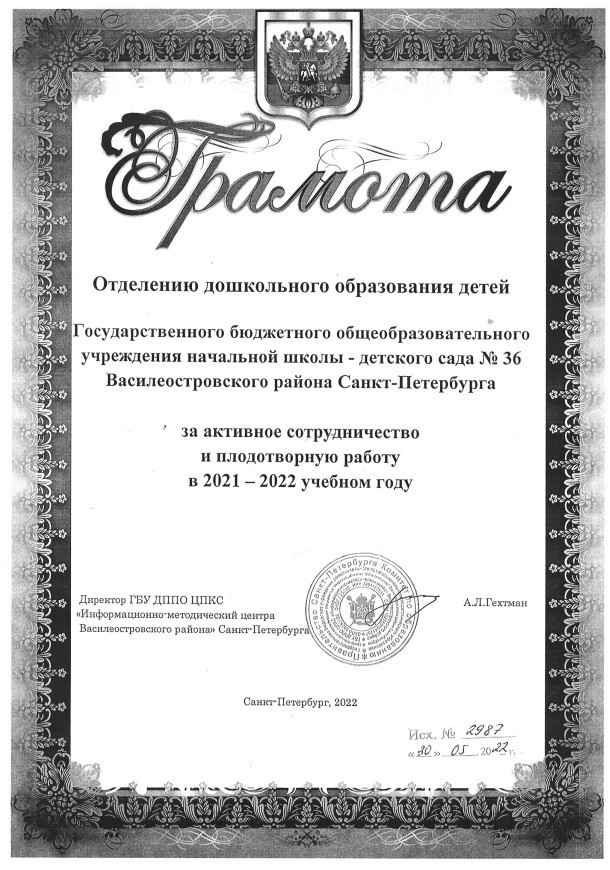 В структурном подразделении ГБОУ НШ-Д/С № 36