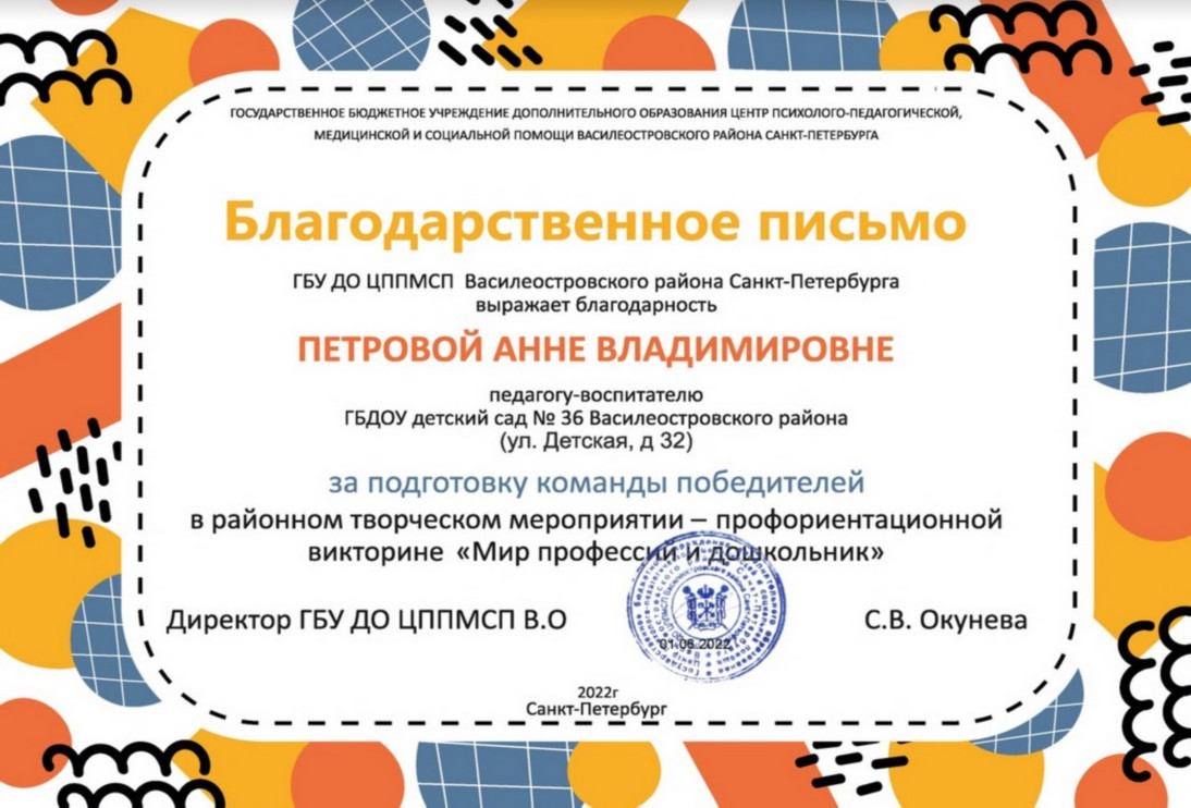 Детским садом приглашен специалист ГБУ ДО ЦППМСП Василеостровского района для ознакомления детей с профессиями