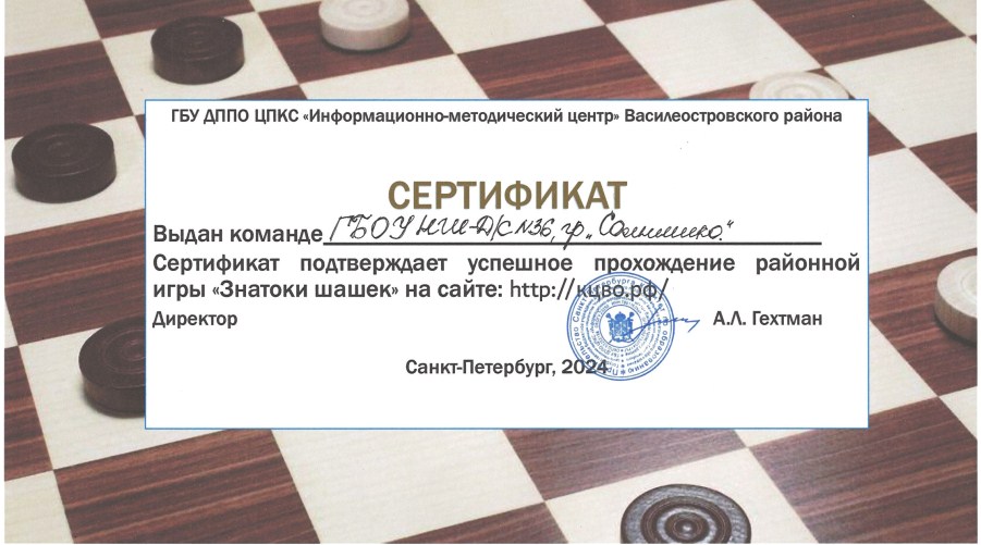 заняла 1 место в Василеостровском районе в турнире по шашкам