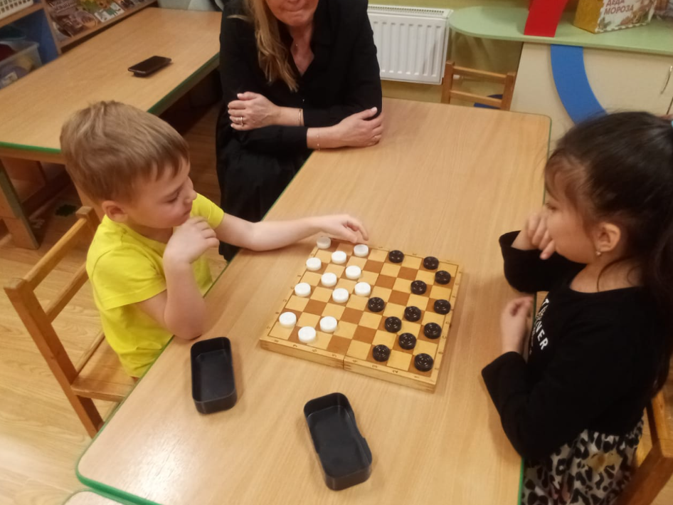 Подготовительная группа "Солнышко" участвовала в турнире "Знатоки шашек"!